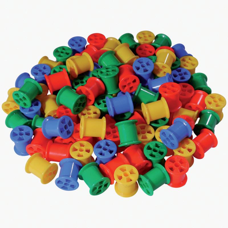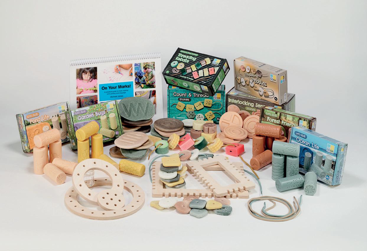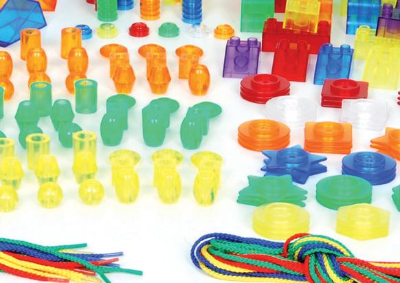 • Tub of 50 plastic bear shapes with threading holes in five dierent colours, with three laces