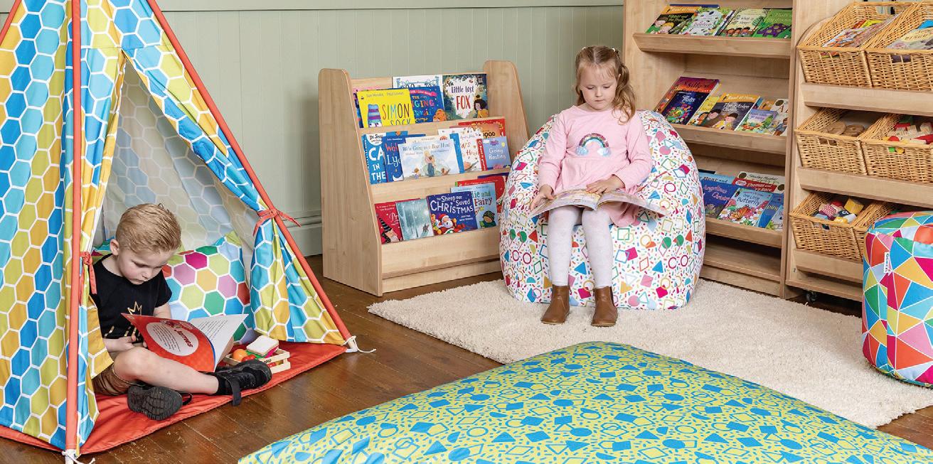 The Cosy Reading Zone is the ideal tranquil setting for children to read, relax or enjoy some quiet play. The den featured in this zone can be used to create a cosy area which you can decorate to suit a chosen theme or activity.