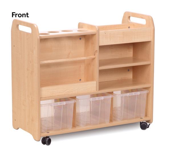 • Two moveable dividers allow you to condense or expand the s torage compartments to accommodate books, toys and games