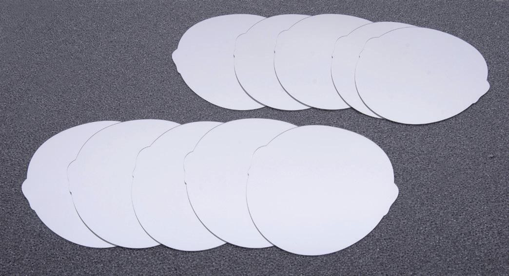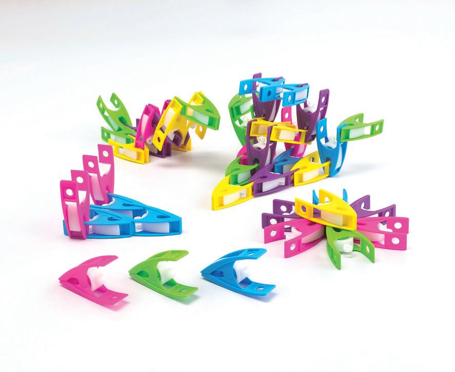 • Brightly coloured, flexible, plastic lacing number cads with assorted colour laces