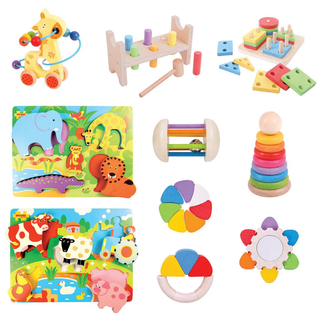 • Each chunky wooden puzzle piece is generously sized to make it easier for little hands to lift, grasp, examine and replace