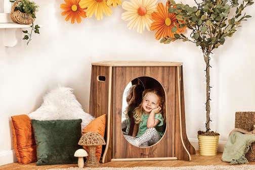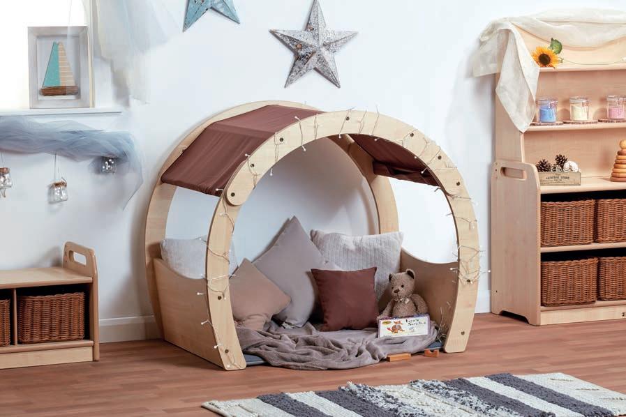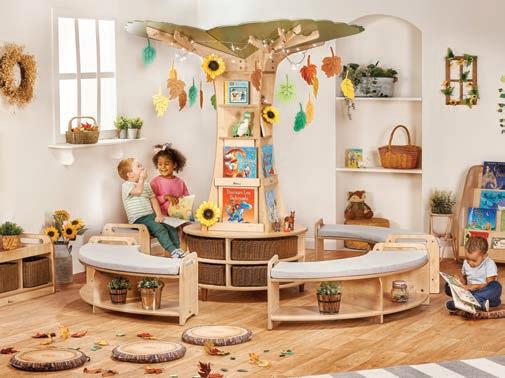 The Millhouse Storytelling Tree is the ultimate feature for early years settings, creating a communicationfriendly space that blends functional storage with a cosy area for story time or quiet play. Its eye-catching canopy includes hooks and loops for versatile decoration.