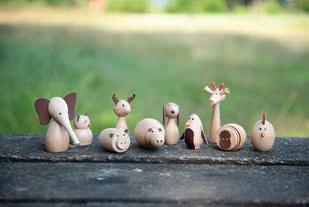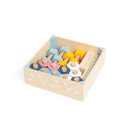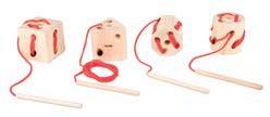 •Four beechwood blocks with holes and laces with wooden threader, ideal for developing manual dexterity and hand-eye coordination