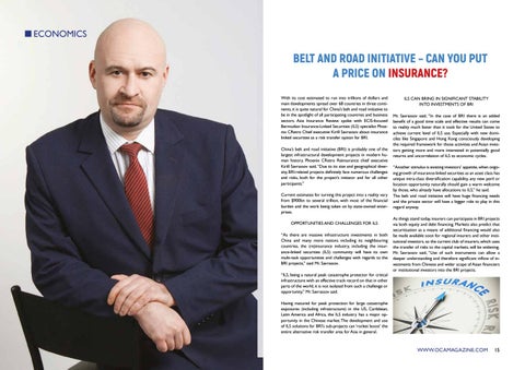 ILS CAN BRING IN SIGNIFICANT STABILITY INTO INVESTMENTS OF BRI Mr. Savrassov said, “In the case of BRI there is an added benefit of a good time scale and effective results can come to reality much faster than it took for the United States to achieve current level of ILS use. Especially with new domiciles like Singapore and Hong Kong consciously developing the required framework for those activities and Asian investors getting more and more interested in potentially good returns and uncorrelation of ILS to economic cycles. “Another stimulus is existing investors’ appetite, when ongoing growth of insurance-linked securities as an asset class has unique intra-class diversification capability, any new peril or location opportunity naturally should gain a warm welcome by those, who already have allocations to ILS,” he said. The belt and road initiative will have huge financing needs and the private sector will have a bigger role to play in this regard anyway. As things stand today, insurers can participate in BRI projects via both equity and debt financing. Markets also predict that securitisation as a means of additional financing would also be made available soon for regional insurers and other institutional investors, so the current club of insurers, which uses the transfer of risks to the capital markets, will be widening. Mr. Savrassov said, “Use of such instruments can allow a deeper understanding and therefore significant inflow of investments from Chinese and wider scope of Asian financiers or institutional investors into the BRI projects.
