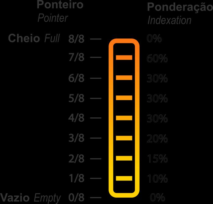 O consumo será calculado em função da leitura do ponteiro de combustível no momento da devolução (avaliada em oitavos do depósito). A faturação do combustível em falta, ao preço/litro Hertz, será ponderada de um coeficiente (ver imagem ao lado) afim de atenuar as imprecisões do ponteiro.