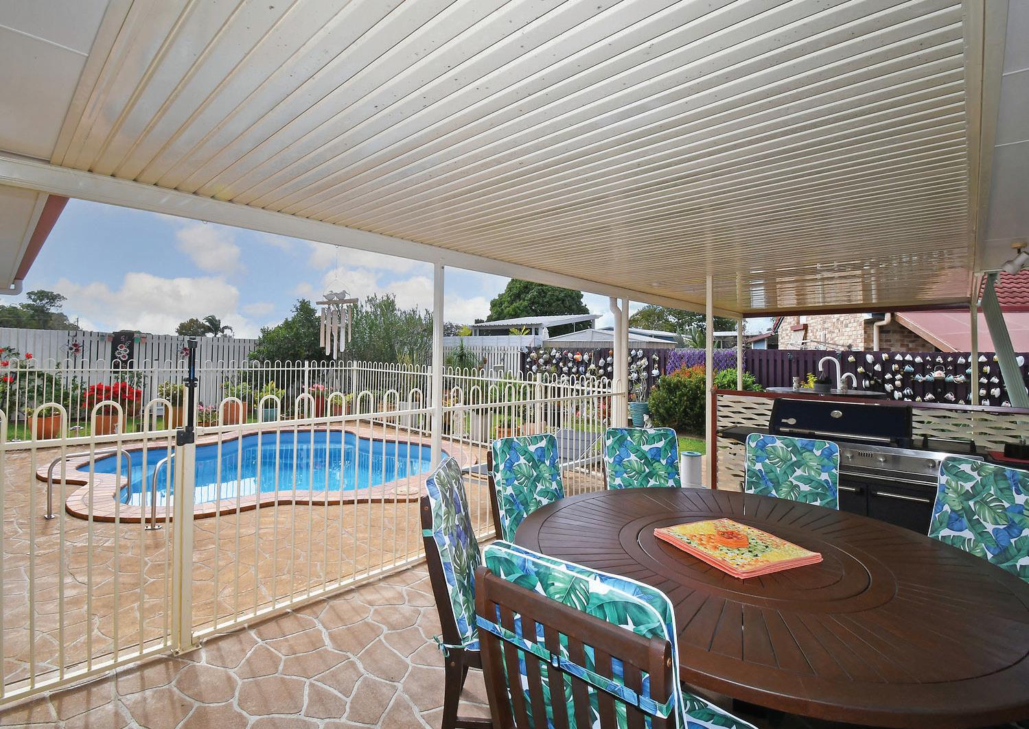 UNDERCOVER DECK OVERLOOKING POOL LARGE LAUNDRY WITH STORAGE FRONT DECK FULLY FENCED 904M2 BLOCK DOUBLE CARPORT & HUGE SHED CURRENTLY TENANTED