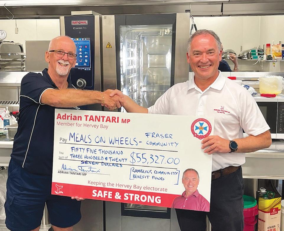 Scotty’s Mad About Meats Bay Plaza, Torquay Road, Pialba | Phone 4124 MEAT 2 kg any sausage thick or thin per 2 kg $28 WHILE STOCKS LAST January 26, 2023 | Hervey Bay Advertiser | Page 9 Adrian TANTARI MP Member for Hervey Bay Keeping the Hervey Bay electorate SAFE & STRONG 4183 8100 hervey.bay@parliament.qld.gov.au Not fast food but a smile, a friendly chat and a meal We’ll bring in the mail, offer a hand or call help if it’s needed. OPEN TO ALL – BREAKFAST, LUNCH & DINNER OPTIONS AVAILABLE. www.mowfc.org.au BIG DISCOUNTS AVAILABLE TO HOME CARE PACKAGE CLIENTS thanMorejust a meal CALL OUR FRIENDLY TEAM TODAY 39A Islander Road, Hervey Bay – 4128 1334 78 Walker Street, Maryborough – 4121 4297