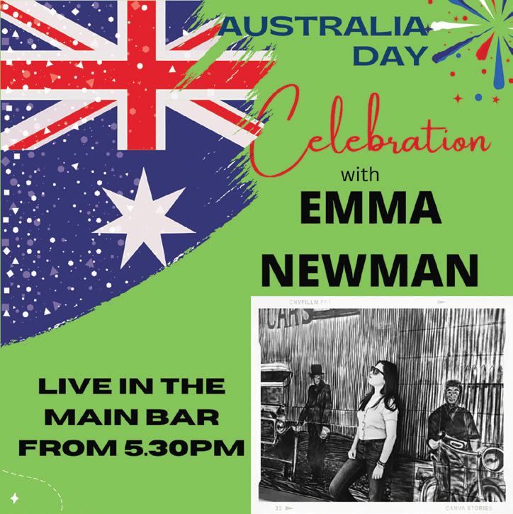 SPECIALS VALID FROM 30/1/23 - 12/2/23 OR WHILE STOCKS LAST “SUPPORT YOUR LOCAL INDEPENDENT BOTTLE SHOP” POWERS GOLD 30PK CANS CARLTON DRY STUB XXXX GOLD STUB TAYLORS ESTATE RANGE BROWN BROS PROSECCO RANGE VODKA CRUISER 10PK MIXED KAHLUA ESPRESSO MARTINI 4PKCANS VODKA “O” 700ML ARKTIKA VODKA 700ML SOUTHERN COMFORT 700ML 2 FOR 2 FOR 2 FOR 2 FOR 2 FOR 2 FOR 19 CRIME RANGE (EXC SNOOP CALI ) SEE YOU AT THE FAMOUS TORQUAY HOTEL HERVEY BAY CNR ESPLANADE & BIDEFORD ST, TORQUAY PH 4125 2266 TRY YOUR LUCK! 45 gaming machines with live hyperlink jackpots HERVEY BAY’S LARGEST INDEPENDENT BOTTLESHOP AT WAREHOUSE PRICES! SATURDAY MONSTER RAFFLES MULTIPLE PRIZES MEAT/SEAFOOD SATURDAYTRAYS FROM 12PM $18 Chicken Breast Schnitzel Served with Chips & Salad or Veggies Sauce Toppers $2.99 Add Garlic & Herb Bread $8.99 MONDAY Crumbed Steak Served with Chips & Salad or Veggies $18 TUESDAY Grilled MSA Rump Served with Chips & Salad or Veggies Sauce Toppers $2.99 Add Garlic & Herb Bread $8.99 $18 WEDNESDAY Local Whiting & Cajun Calamari Served with Chips & Salad or Veggies Add Garlic & Herb Pizza $12.99 $18 THURSDAY Roast Roll with Chips Filled with our roast of the day, topped with onion and gravy and served with chips $18 FRIDAY Sunday Roast Roast of the day with roast potatoes, fresh vegetables and rich gravy $18 SUNDAY FRIDAY NIGHT IS BURGER NIGHT $20 Choice of delicious gourmet burgers with lettuce, tomato, cheese & beetroot. Served with fries or sweet potato fries. Your choice of sauce on the side. KITCHEN OPEN EVERYDAY 11AM - 9PM 2 FOR 2 FOR 2 FOR $3390 2 FOR $4890 $4990 $4690 $3999 $3890 $2290 $1690 BAILEYS 1LTR $1790 2 FOR $3890 $3790 $2200 2 FOR