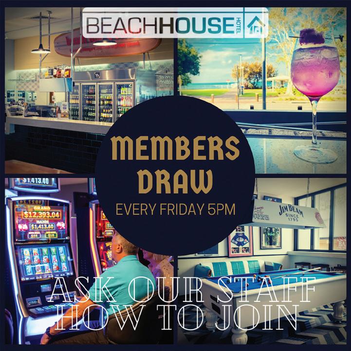 Visit The Beachhouse Mixology experts for the latest thirst quenching cocktails on the esplanade, with live entertainment 7 nights a week. Corner of Esplanade & Queens Rd, Scarness beachhousehotel.com.au Phone 4196 9366