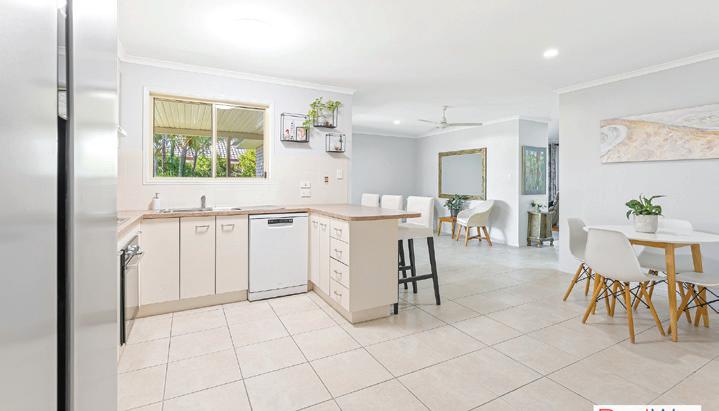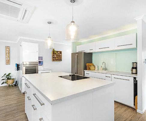 • Open plan kitchen overlooks living and dining area, all air-conditioned
