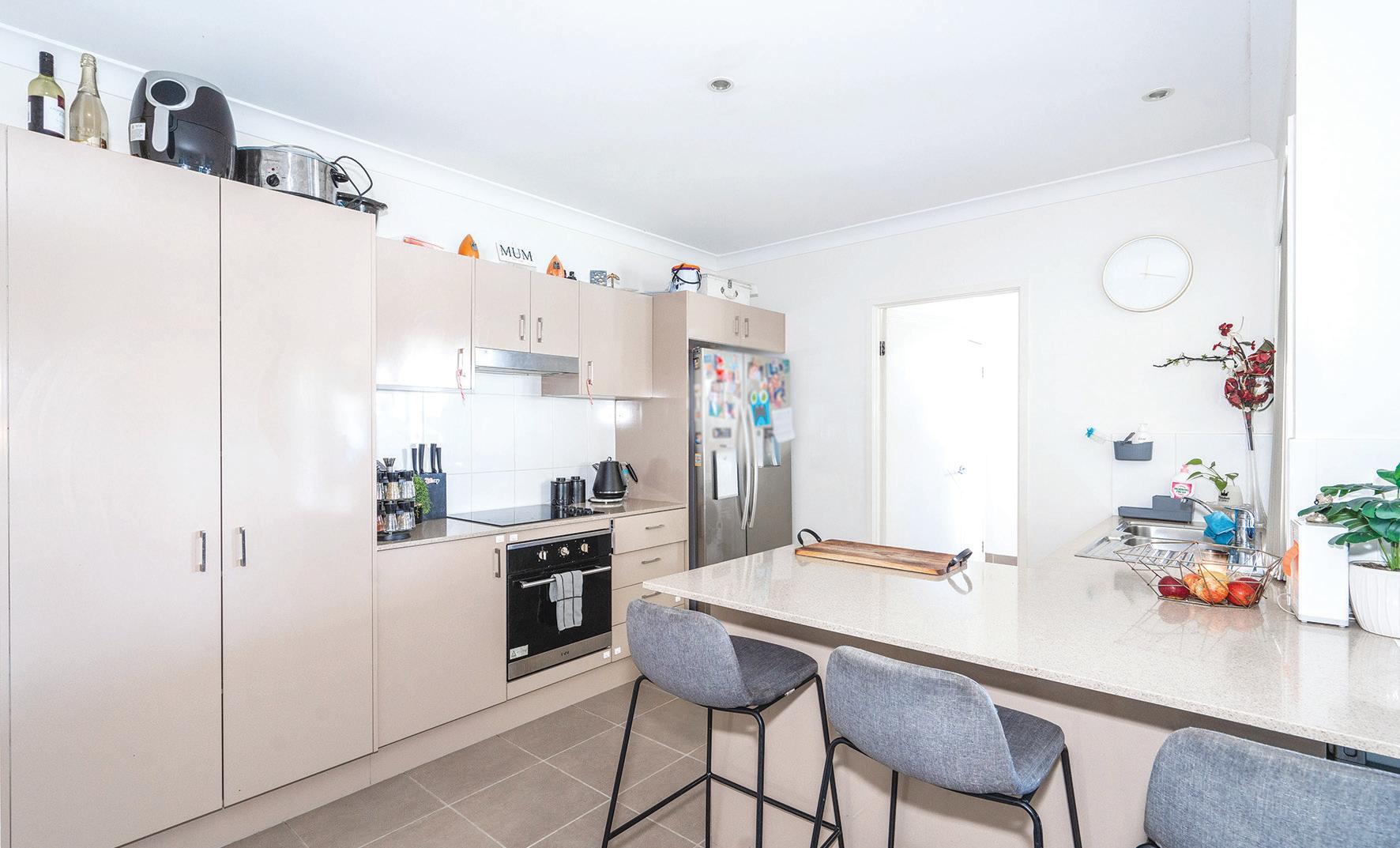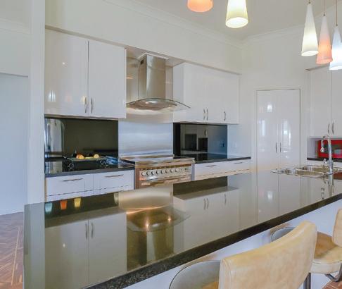 • Large modern kitchen with electric appliances, stone bench tops, dishwasher and plenty of storage