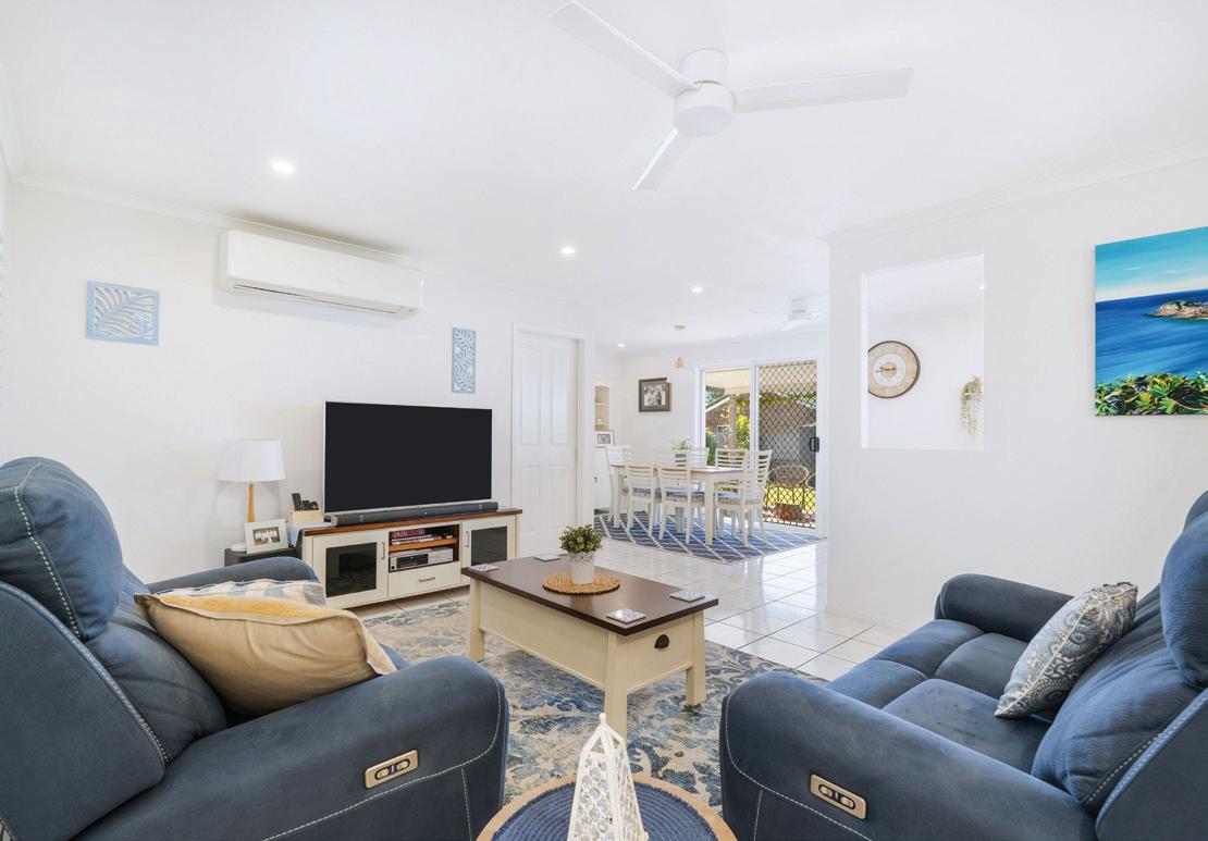 Inside, four bedrooms and two bathrooms provide ample space for the family and guests, each room adorned with ceiling fans for