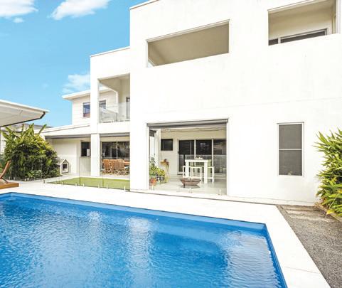 The beating heart of the home lies in the open plan living, complemented by soaring high ceilings and large windows offering an abundance of natural lighting and a statement kitchen. Host guests in style with a fully-equipped, modern kitchen boasting a sleek colour palette and ample storage space and includes a well-designed walk-in pantry. Appreciate the spaciousness of the open plan dining and lounge space, as well as the additional media room and rumpus/TV room.