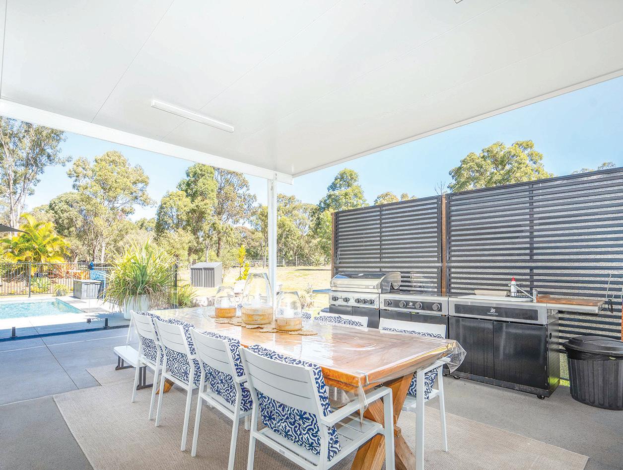 An expansive open-plan living and dining room showcases a spacious kitchen superbly designed with an enormous amount of storage. The 40mm stone bench tops with high servery ensures in keeping all your clutter out of sight.