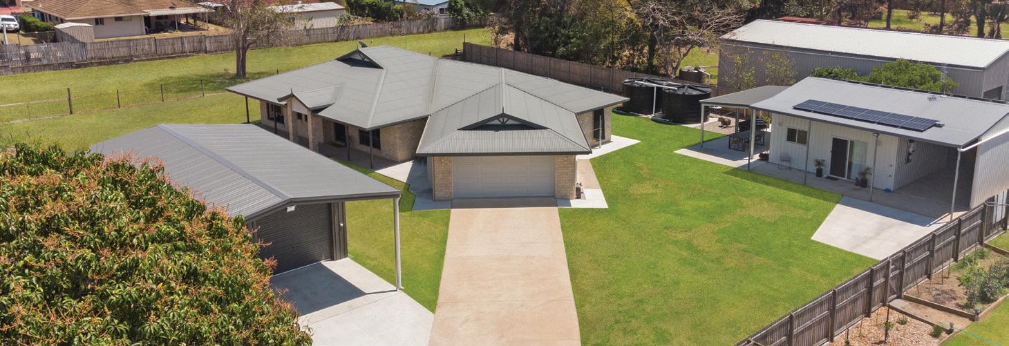 4 bed, 2 bath (master with ensuite) • Ducted air-conditioning • Solar panels • Modern kitchen with stone benchtops • Large undercover entertainment area • Dlug with internal access plus separate shed • Large concrete pad for caravan $1,290,000 13 Eagle Beach Parade, DUNDOWRAN BEACH A Contemporary Beachside Home • Caesar stone kitchen bench tops • Ducted air conditioning • Great living space for all the family • Plenty of storage • Steel frame construction • Brick and colourbond • 9 X 11 shed with power & lights • Swimming pool • 2012m2 fully fenced block a walk to the beach • Total house area 318.31m2 $1,000,000 56 Shellcot St, TOOGOOM Beautiful Beachfront Paradise • 3 Bed; 2 bath; 2 car • Wheelchair friendly throughout • Air conditioned throughout • Gorgeous entertainment area and backdrop • Good sized bedrooms. • Holiday let 2023 net return $68k. • Fenced yard $815,000 24 Broadway Drive, CRAIGNISH Catch The Sea Breezes • 5 bedrooms with dual living potential • Master with 2 way bathroom • Lounge room up and downstairs • Full length North facing front veranda and rear deck • Double garage with internal access • In-ground pool with entertaining area • 9m x 6m shed with separate driveway • Solar panels & Solar hot water • Quiet location • 2230m2 corner block $1,099,000 100 Craignish Road, CRAIGNISH It’s All About Lifestyle!!! • 2.06HA flat block • 4 Bed 2 Bath. Master with ensuite • Massive 6 bay shed plus DLUG with internal access • Town Water • Solar panels [approx. 4.2kw] • Large dam with several fruit trees • Very private property • Acreage living close to town & beach Offers over $1,200,000 19 Palmwood Drive, DUNDOWRAN BEACH Beachside Oasis • Spacious home only 150m from the beach • 4 Generous Bedrooms, 2 with ensuites • Separate Rumpus/Lounge • Open plan kitchen and living area • Ducted Air Conditioning • Double garage with internal access to the home • 9m x 6m Shed • Established gardens & fruit trees Contact agent for price 11 Pacific Promenade, CRAIGNISH Blissful Beachfront Beauty