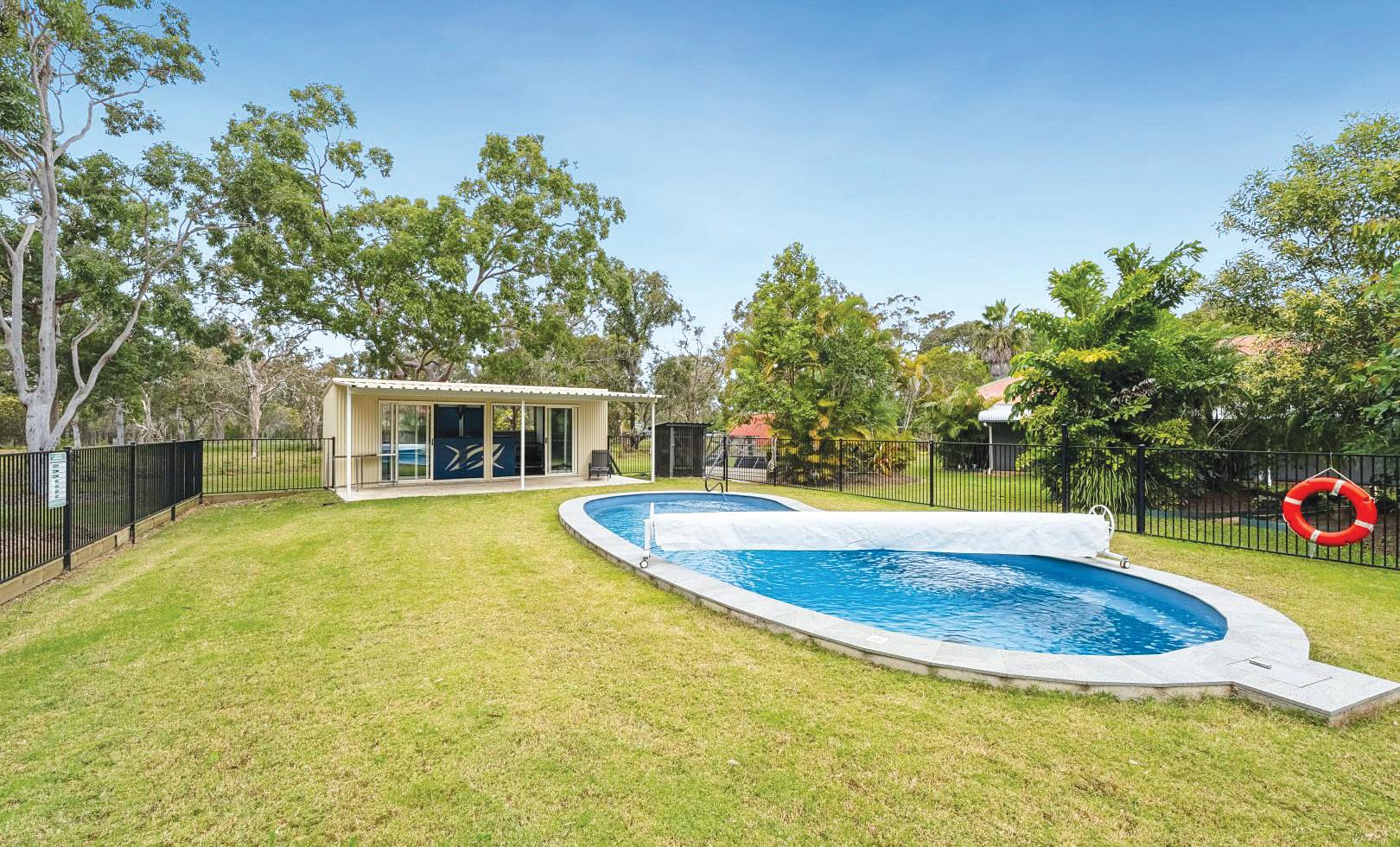 A standout feature is the additional purpose-built storage area, which includes two separate rooms. Outside is a covered entertaining area which overlooks a sparkling saltwater pool, providing the perfect space to relax or host gatherings.