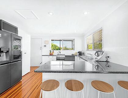 • Modern kitchen with stone benchtops and ample storage