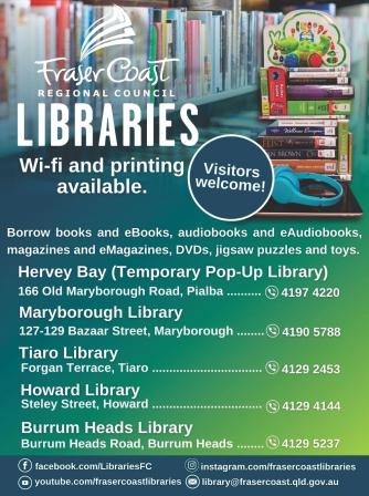 See & Do................................ Local Markets Accommodation.................................... Health & Beauty Places of Worship......................................... Pubs, Clubs and Eating Out Maps..................................................... River Heads Street Directory Howard.................................................. Burrum Heads Shopping............................................... Shopping/Maryborough Maryborough......................................... Childers Bundaberg............................................. K’gari/Fraser Island Tides Automotive Retirement Builders & Real Estate............................ Trades & Services Index