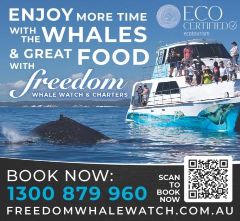 Page 08. Hervey Bay & Fraser Island Tourist Guide No. 132. e-mag: issuu.com/herveybayguide.info Deliciouslunch, morning& afternoontea Cruisefrom9.30am to3.30pmdaily (JulytoOctober) Courtesytransfers Comfortable58ft Catamaranwith 3viewinglevels