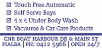 • Bistro • Coffee Shop • Bottle Shop • Gaming & Keno • Motel • Sports Bar & TAB Bar Ph: 4122 6666 www.carriersarms.com.au 405 Alice Street, Maryborough MARYBOROUGH MARKETS Experience the colour, atmosphere & great value of Maryborough’s famous weekly markets! • Early bird gets the worm! With fresh fruit, vegetables & flowers • Over 100 arts, crafts, fashion food & gift stalls • Relax on the Town Hall Green with a coffee listening to quality local, live music • Ride the Mary Ann Steam Train in nearby Queens Park Adelaide Street 7am - 12noon | JOIN US EVERY THURSDAY • Firing of Maryborough’s historic Time Cannon at 1pm facebook.com/mbmarkets www.frasercoastrotaryevents.com.au Ph: 4302 8631 | Open 7 days a week W: www.alowishus.com.au A: 232-244 Adelaide St, Maryborough (4min walk from Story Bank) FREE COFFEE! Coffee • All Day Breakfast • Lunch Takeaway • Catering • Gelato Download the app & get a