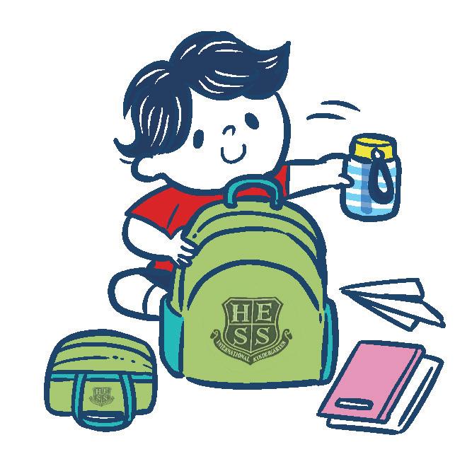 確認老師請孩子帶的物品,例 如換洗衣物,再放入每天都要 帶的物品(餐袋、水壺)。