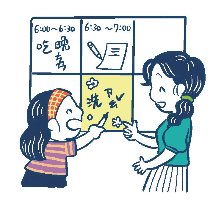 與孩子討論並寫下或畫下「時間表」, 請孩子依此執行,逐漸養成習慣。