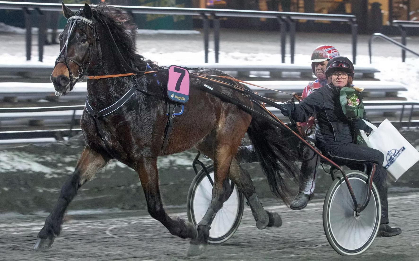 - Han er en flott og høyreist kar. Han er snill i det daglige, og pigg og kjøre. Det er en veldig trivelig hest, og det hadde vært gøy om han bikket million innkjørte. I tillegg er han et fint tilskudd til travet her i nord. Det er ikke mange elitehester igjen, de begynner og bli gamle. Han fikk en magesårkur når han kom. Jeg liker å gjøre det på nye hester. Da starter vi litt med blanke ark. Han virker og være frisk, men jeg har ikke opphevet startforbudet enda, veterinæren kommer til uken, forteller hun.