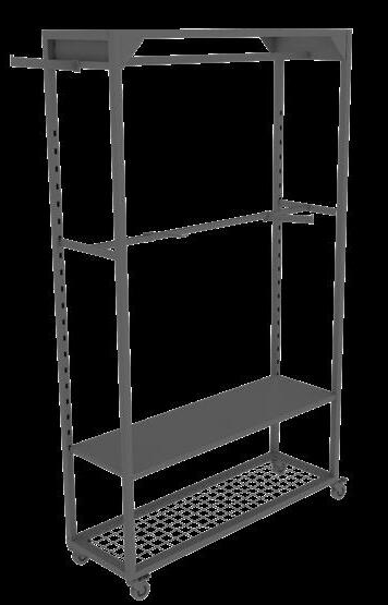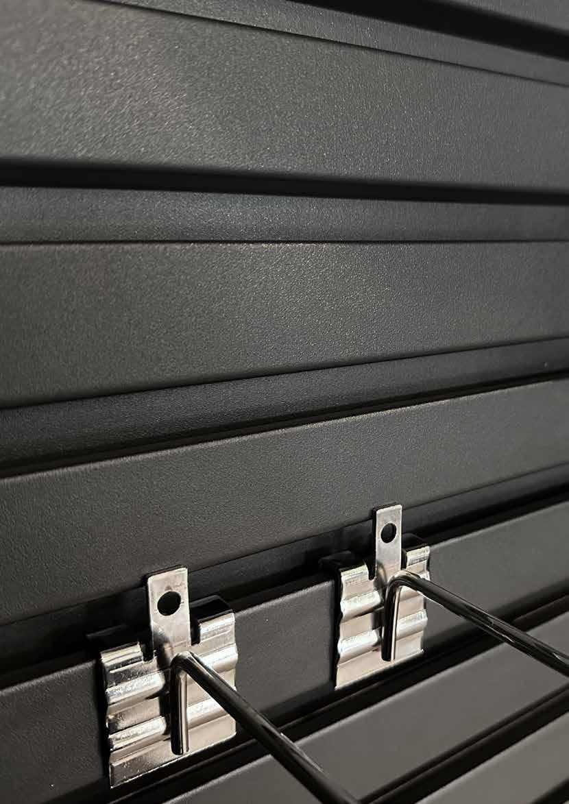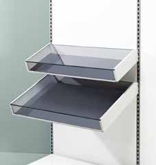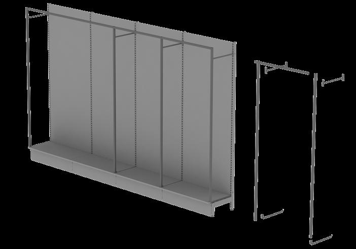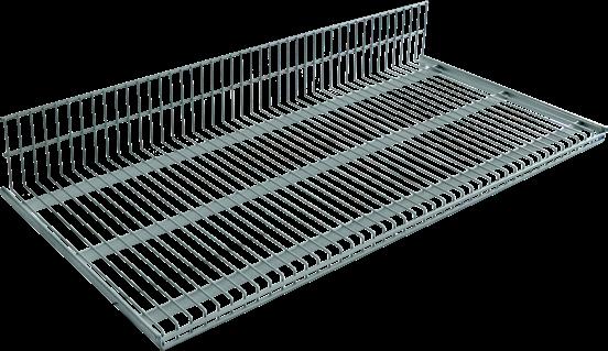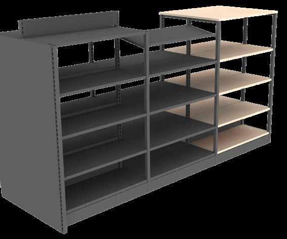Hyllplanen levereras galvaniserade alternati rlack i ljusgrå färg . Gavelplåt, ryggplå ljusgrå sockelplåt och