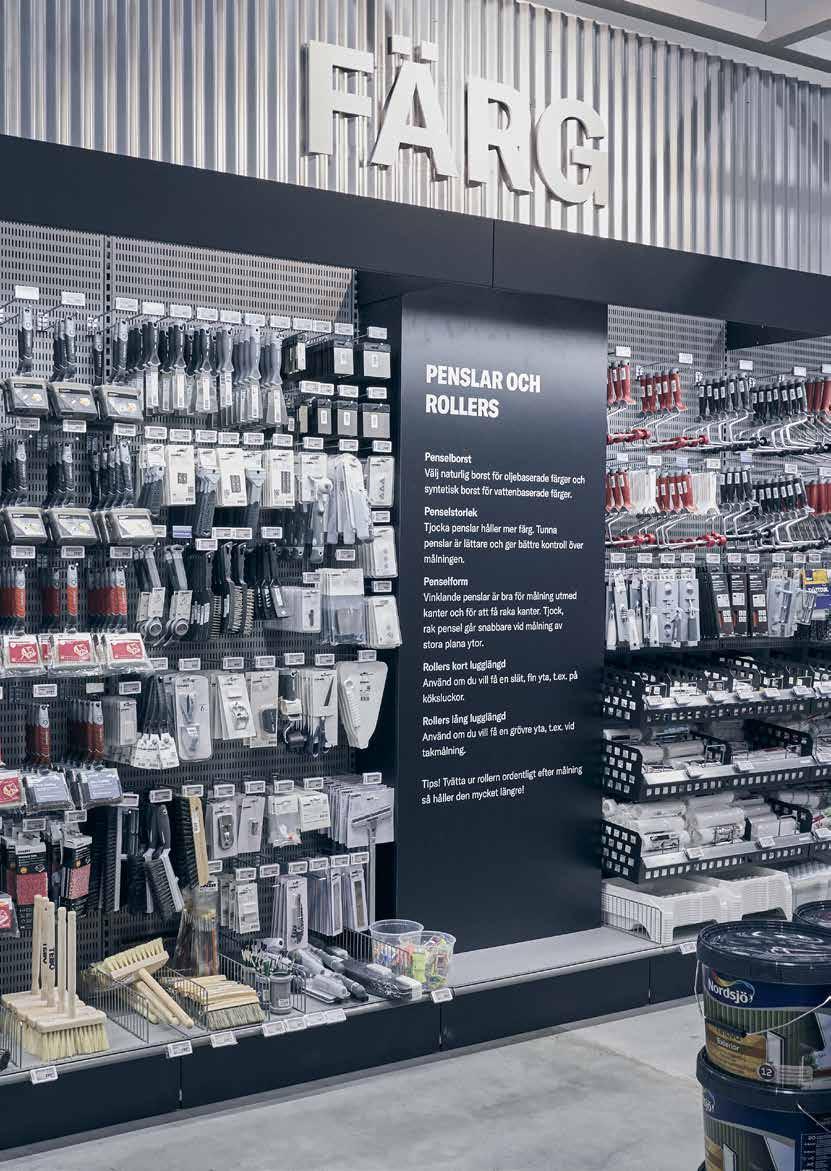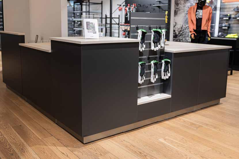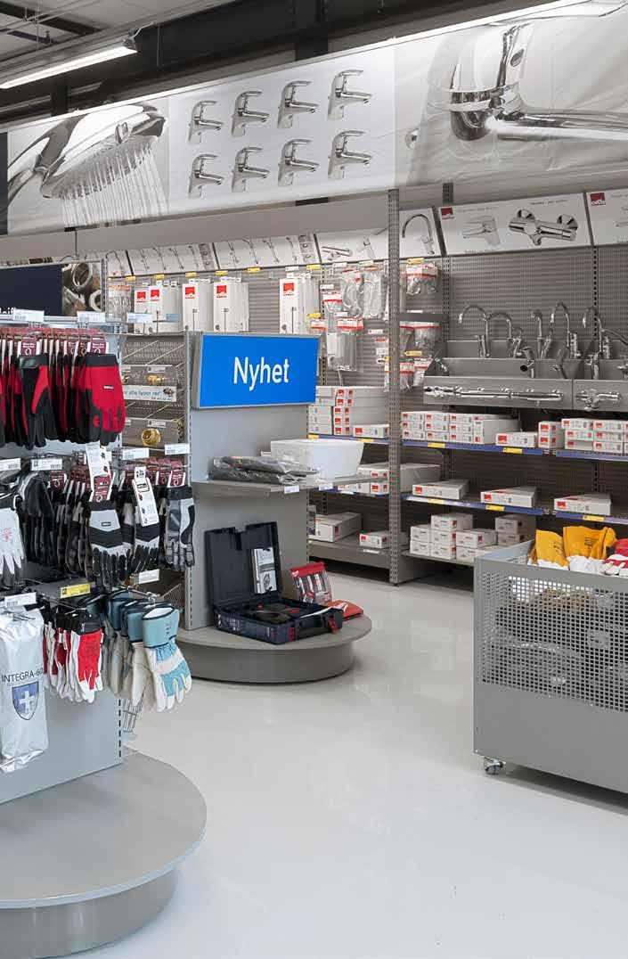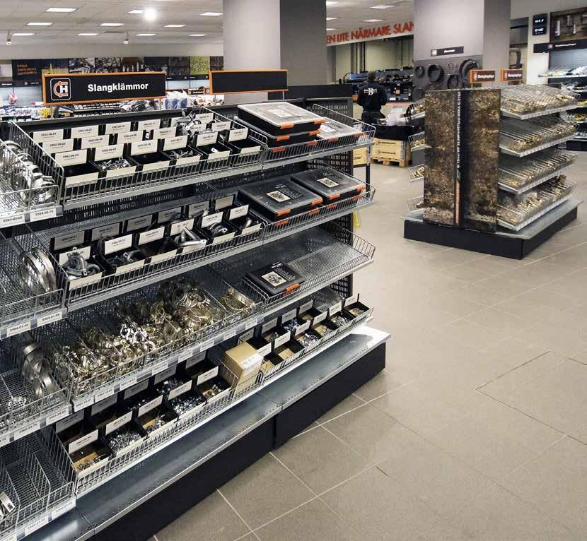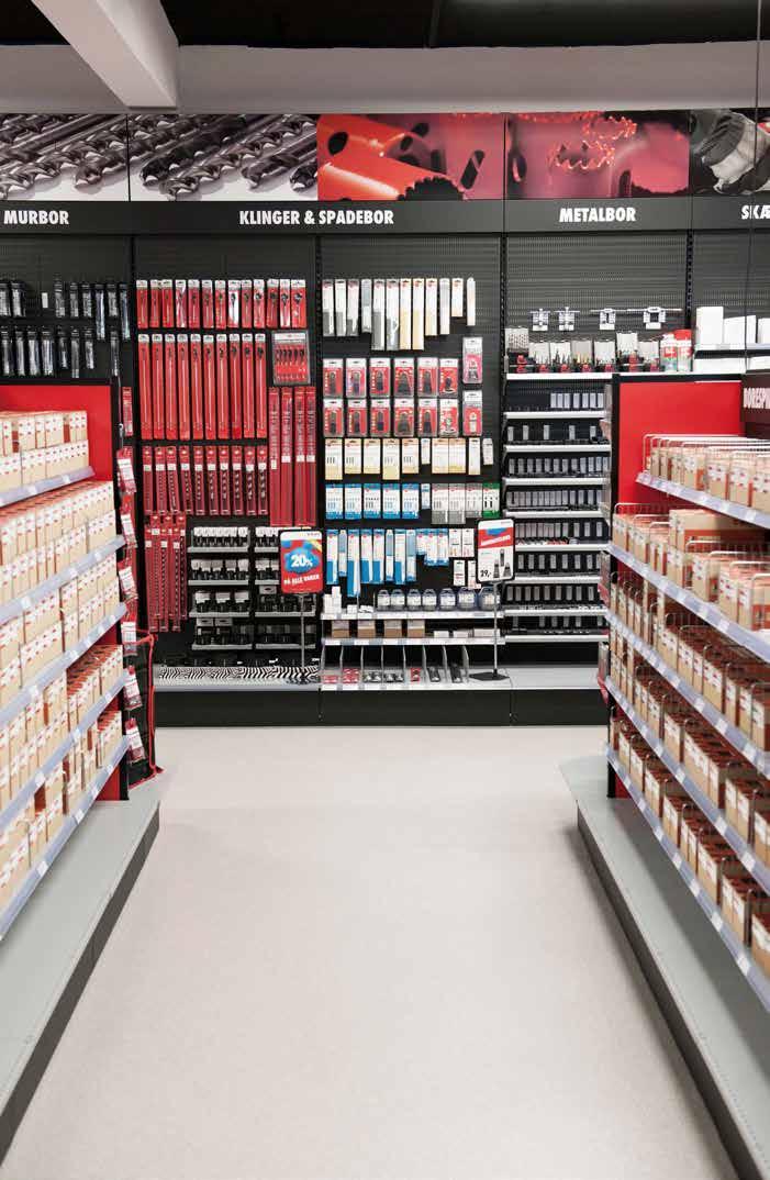 Nogle gange laver vi en helt kundeunik indretning, men i mange af de butikker, vi bygger, udvikler vi koncepter baseret på vores brede basissortiment. Med dette som udgangspunkt tilføjer vi efterfølgende detaljer og farver, der forstærker konceptet og skaber et udtryk, der skiller sig ud fra andre butikskæder.