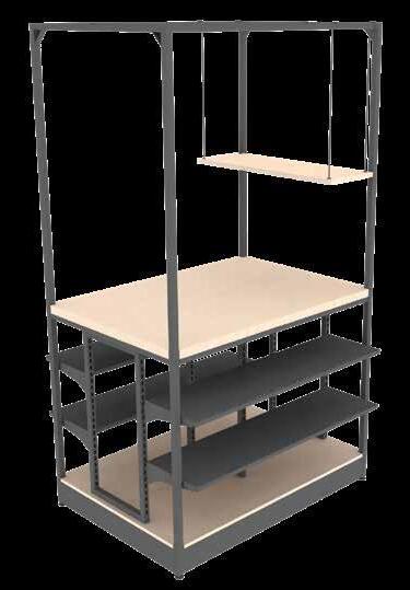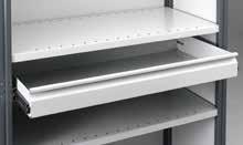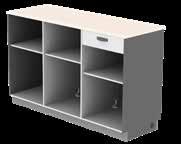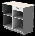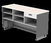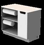 2. Kassedisk med trinløs hævning/sænkning 1800 Udstyret med 1 skuffe med fuldt udtræk og "softclose" og 2 flytbare hylder. Længde 1770 mm. Dybde 635 mm. Højde 944-1144 mm. 47 18 62