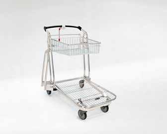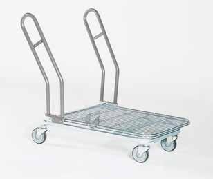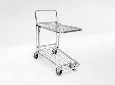 2. Indkøbsvogn Junior Stabil og robust vogn med opklappelig øverste hylde. Poleret, galvaniseret. Lasteevne op til 300 kg. Stablingslængde 260 mm. Hjul 125 mm. Længde 970 mm, bredde 520 mm, højde 995 mm. 57 90 50