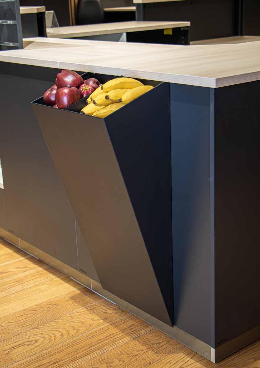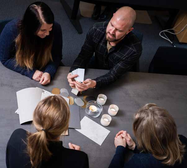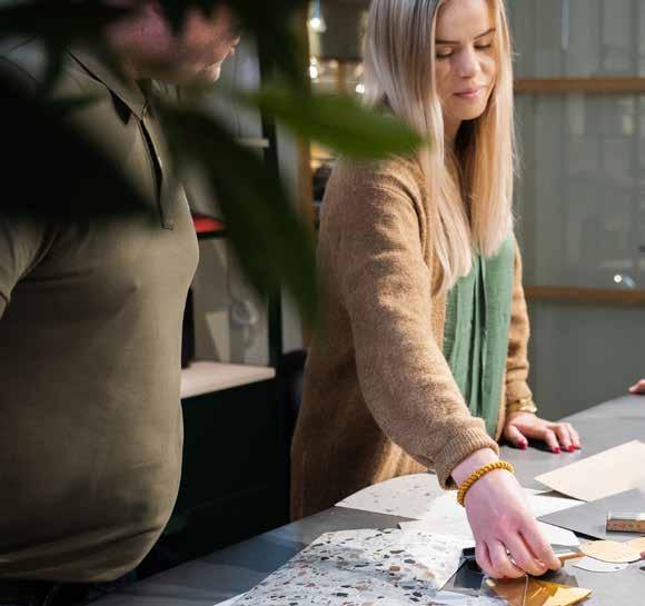 Vi ved, at det er vigtigt at vælge det rette materiale, for at resultatet bliver både spændende og funktionelt. Derfor er det vigtigt at kende de forskellige materialers egenskaber og muligheder. Den indret ning, vi producerer, lever op til de høje krav til slidstyrke, funktion og udtryk. Ønsker du at skabe dit eget koncept, står vores arkitekter klar til at hjælpe med konceptudviklingen.