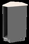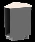 10. Yderhjørnedisk høj brudt 45° Længde 374+374 mm. Dybde 635 mm. Højde 1104 mm. 47 45 70