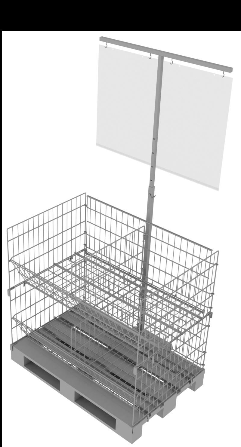 Placeras under pall. Används för att styckexponera innehåll i pallen. Justerbar höjd 900-1200 mm.