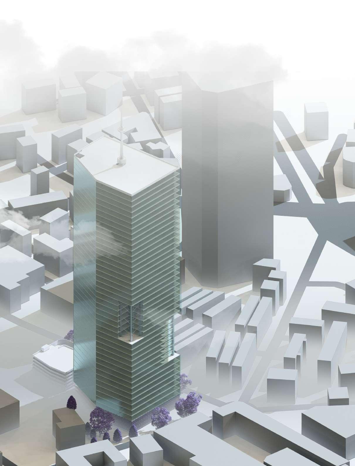 Fish Mouth Unit attached to the DSF unit Green walls for the external façade