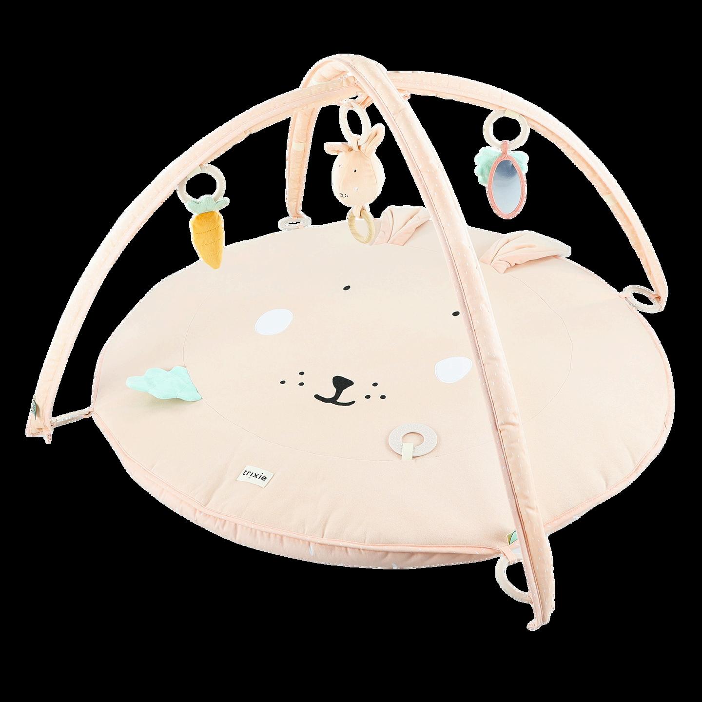 KOEKA Links Boven omslagdoek KOEKA Rechts Boven Parklegger 75x100cm I QUAX Links Midden Park Cubic I LITTLE DUTCH Rechts Midden Muziekmobiel I KOEKA Links Onder Omrander bed of park I LORENA CANALS Rechts Onder Tapijt