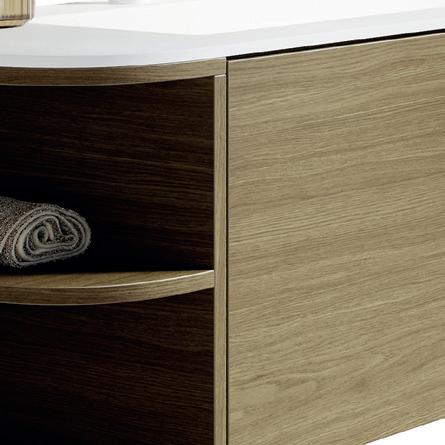 hun ideale badkamermeubel samen te stellen. Er is keuze uit vijftig verschillende kleuren en het wastafelblad kan worden uitgevoerd in diverse materialen, van keramiek tot beton. Ook spiegels en accessoires behoren tot het assortiment.”