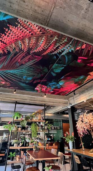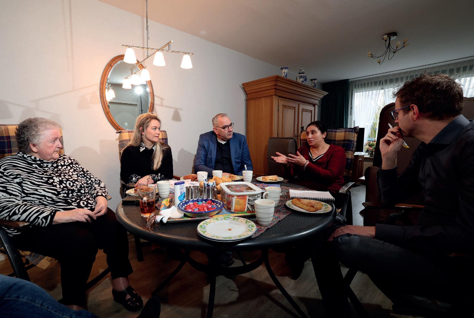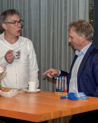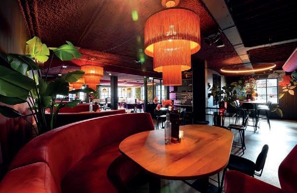 vloeroppervlakte extra. Daarop staan nu een aantal grote ronde tafels, waar je wel met z’n tienen aan kunt zi en. Maar ook met z’n vieren is het gezellig.”