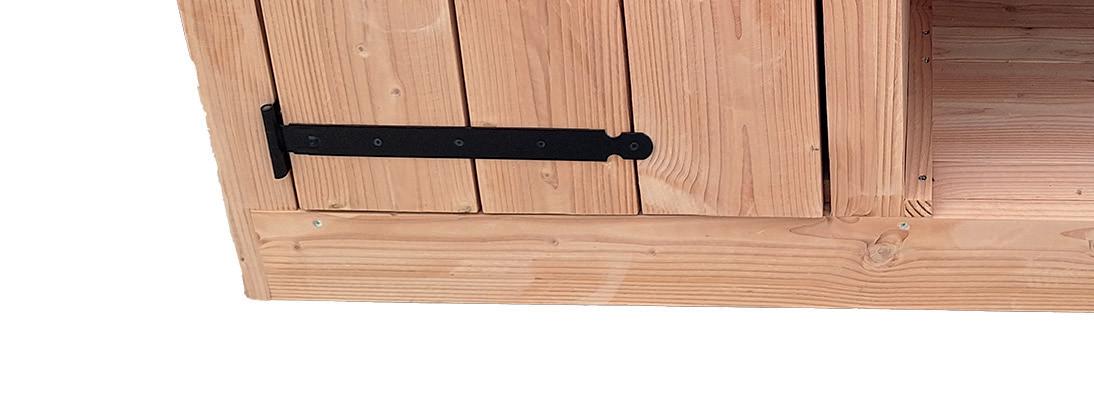 “We maken de meubels in onze eigen werkplaats”, vervolgt Marcel. “Onze barbecuetafels zijn vervaardigd van Douglashout, standaard voorzien van een keramische tegel en grote zwenkwielen. Alles is degelijk uitgevoerd, en desgewenst maken we het op maat. Bijvoorbeeld de uitsparing voor de barbecue: die maken we passend voor elk type ke le barbecue of kamado.”