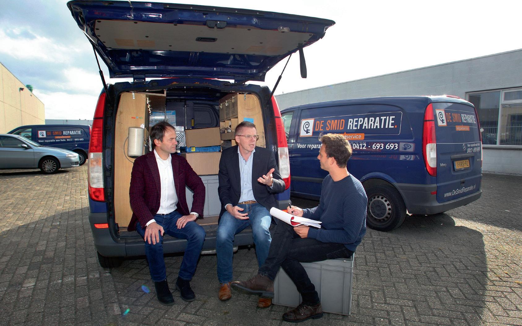 De Smid Reparatie is een onafhankelijke technische dienst en servicebalie voor de reparatie van witgoed- en elektronicaproducten. “Onze monteurs bezoeken klanten in Zuid- en Midden-Nederland”, vertelt eigenaar Mark van Schaijik (links op de foto). “Maar het oplossen van problemen begint eigenlijk al bij onze werkvoorbereiders. Zij behandelen de orders en op basis van hun informatie gaan onze monteurs perfect voorbereid de weg op. Daarmee maken we echt het verschil.”