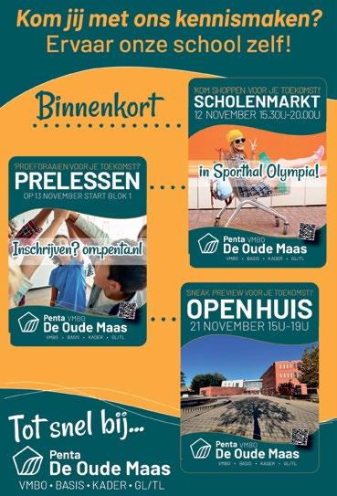 tie van scholen van voortgezet onderwijs uit Spijkenisse en omgeving. Nieuwsgierig geworden na deze kennismaking? Dan hebben de meeste scholen nog meer dagen om eens verder kennis te maken in de school zelf. Deelnemende scholen zijn: Penta Scala Rietvelden, Penta Scala Molenwatering, Penta De Oude Maas, PentAgora, Penta Charles de Foucauld, Penta Hoogvliet, O.S.G. De Ring van Putten, MY college, Praktijk College Spijkenisse, Yuverta Brielle, Scheepvaart en Transportcollege, Gra sch Lyceum Rotterdam, Einstein Lyceum. Tip: kom op de ets of parkeer de auto alleen in de daarvoor bestemde vakken.