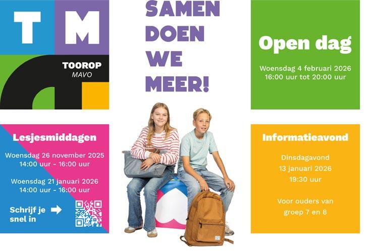 Voor leerlingen uit groep 8. Woensdag 11 februari 2026 14.30 - 16.30 uur