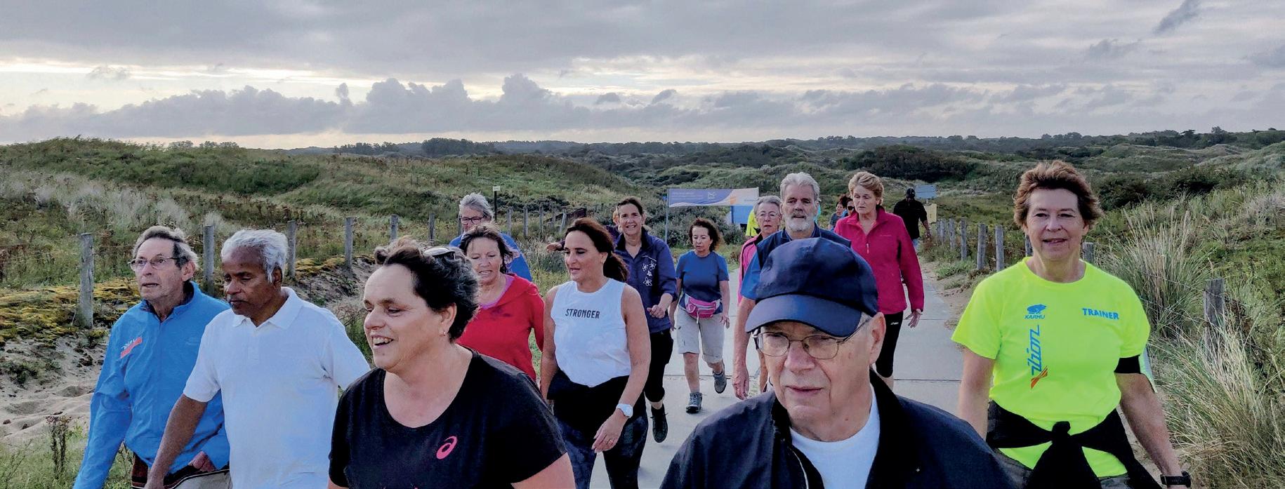 bent lekker actief bezig, maar hebt minder kans op blessures dan bij hardlopen. “Omdat de intensiteit van fitwandelen hoger is dan bij gewoon wandelen vergroot je de inspanning. Extra oefeningen - voor onder andere armen en benen - die tijdens het wandelen gedaan worden zorgen ervoor dat je hartslag aanmerkelijk omhooggaat. Zo werk je tegelijkertijd aan je conditie.” Esser benadrukt dat ook de gezelligheid in de groep een grote rol speelt. “Het mooie van wandelen is dat je tijdens het lopen mooie gesprekken met elkaar kunt hebben. Dat kan over overal over gaan. Politiek, of de actualiteit. Omdat je elkaar niet aan hoeft te kijken is er ook ruimte voor diepere gesprekken.”