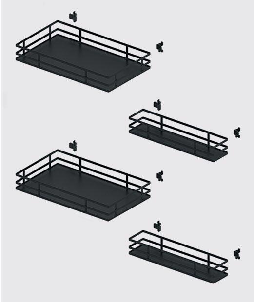 Pull-out shelves with HDF panel (5 mm) and flat wire railing