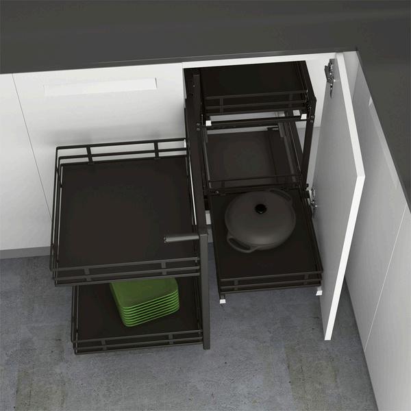 This means more convenience for all kitchen users: the cabinet interior quickly shows where everything's kept and provides convenient, ergonomic access to cabinet contents Even small alcoves, narrow cabinets and hard-to-reach corners can be used more efficiently with solutions from Hettich.
