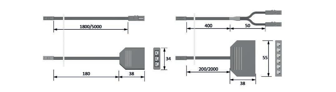 Our lights based on 24 V DC are supplied with a Multi-Plug system MP2 and may be generally extended by 2 extension leads of 1.8 m each in addition to the line assembled as standard.