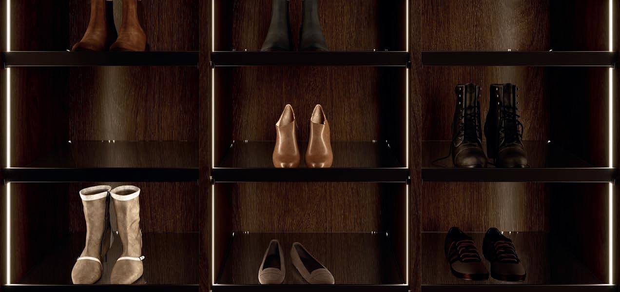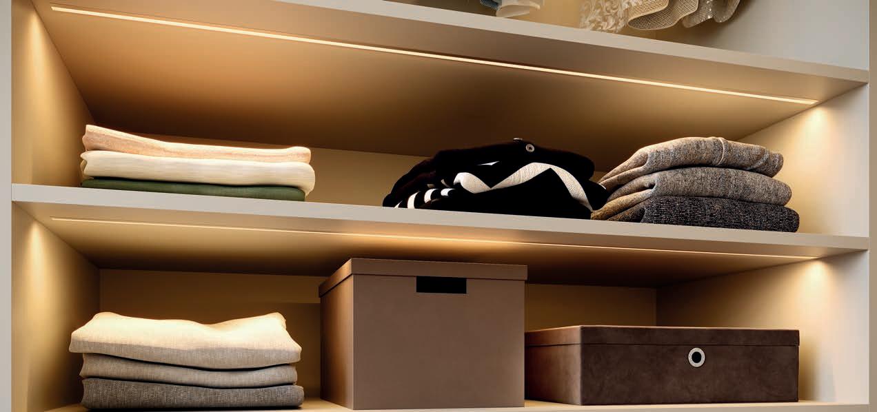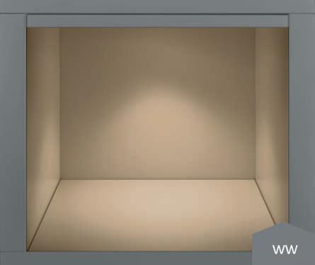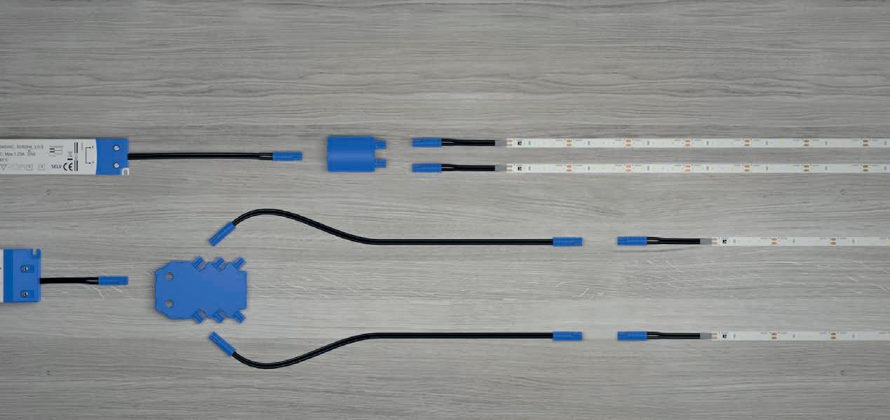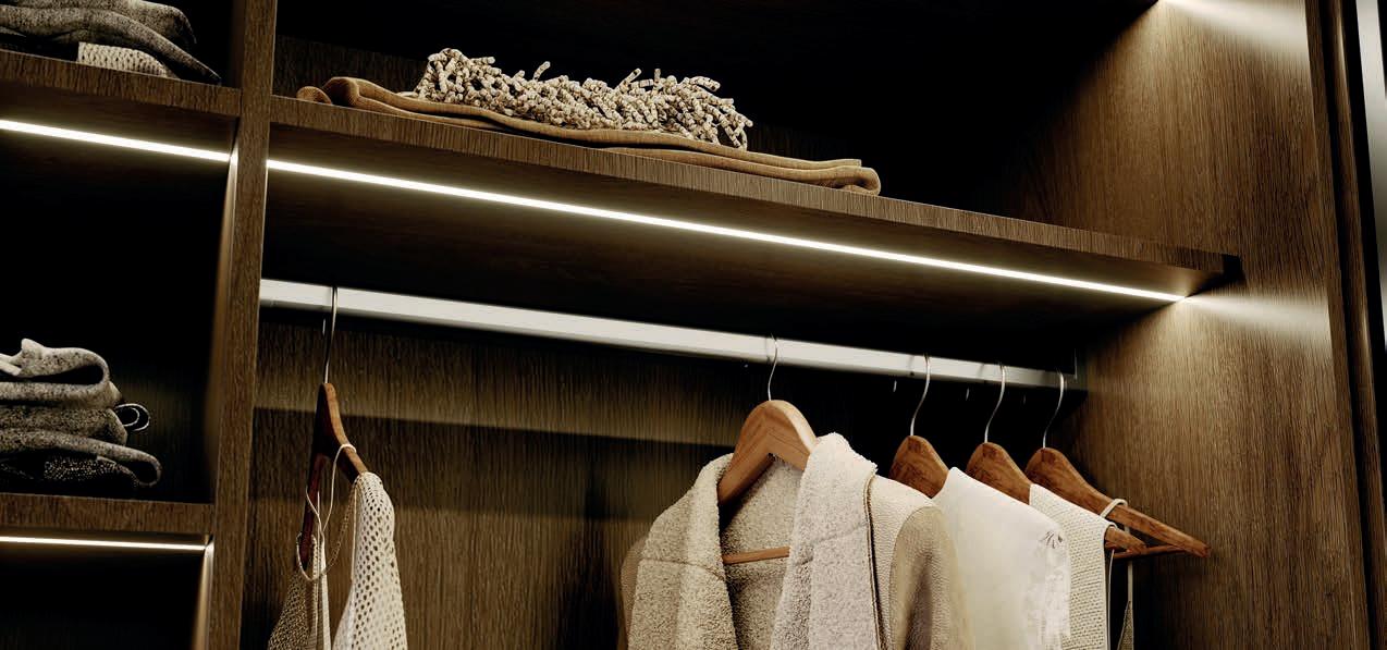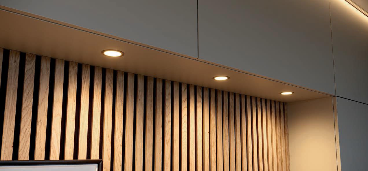 Our magic range utilises 12-volt lighting for furniture applications. This lower voltage allows for smaller light segments that can be elegantly concealed within furniture or profiles and create less shadow compared to 24 volts. With 12-volt lighting, you can effectively highlight cabinets, shelves, and display cases without worrying about the size of the transformers and cable management.