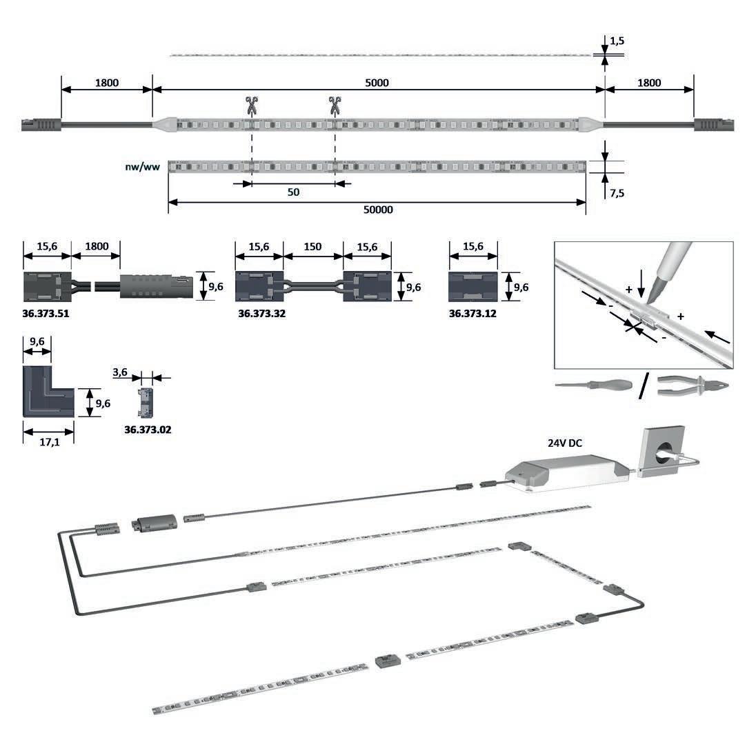 Our LED strips are known as "Versa" due to their versatility. They can be adapted to a wide range of requirements. With the ability to be cut to size and provide adjustable light colours, these LED strips open up a world of possibilities for custom lighting designs in furniture construction.