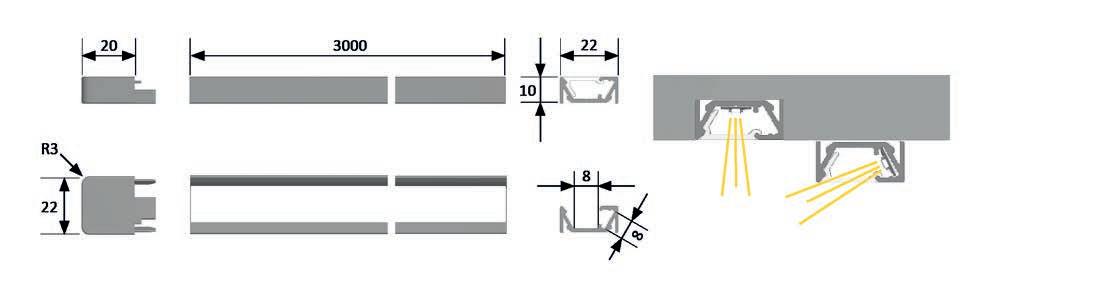 The integration of Versa LED strips is optimised through the use of ChannelLine profiles*, which ensure ideal processing.