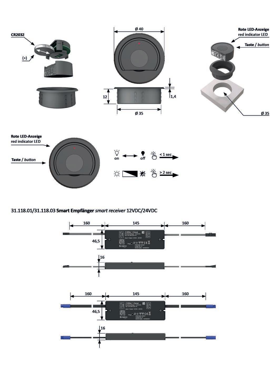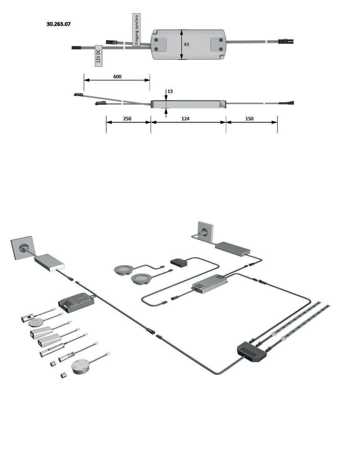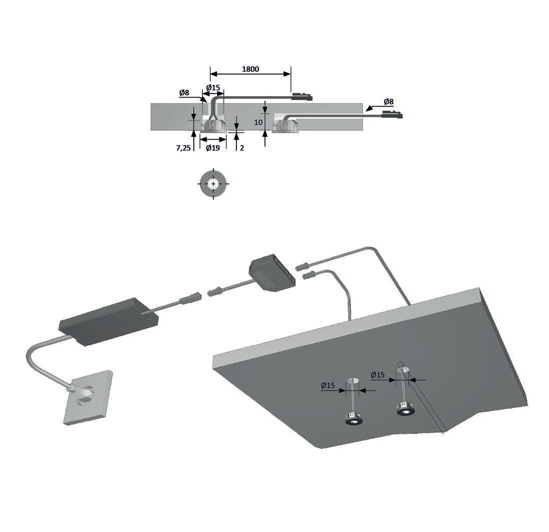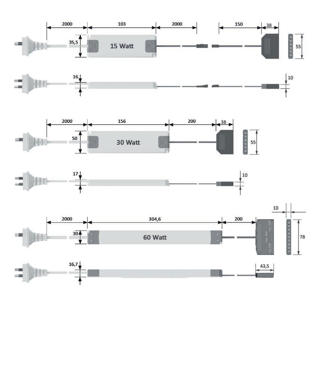 Our lights based on 12 V DC are supplied with a mini LED plug system M1 and may be generally extended by 2 extension leads of 1.8 m each in addition to the supply lead fitted as standard.